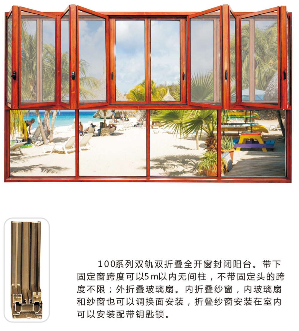 100系列雙折疊窗紗一體全開窗1.2厚鋁型材